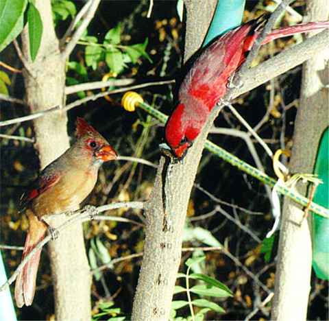 At one time I counted 26 Cardinals in the surrounding trees,