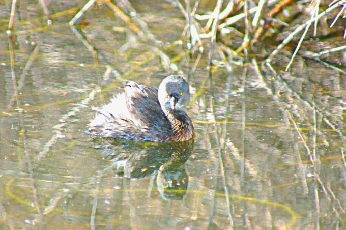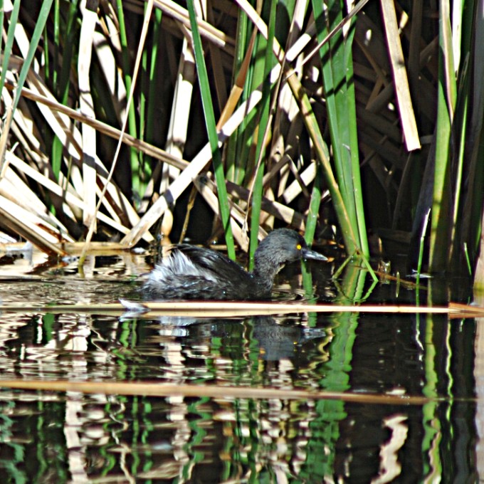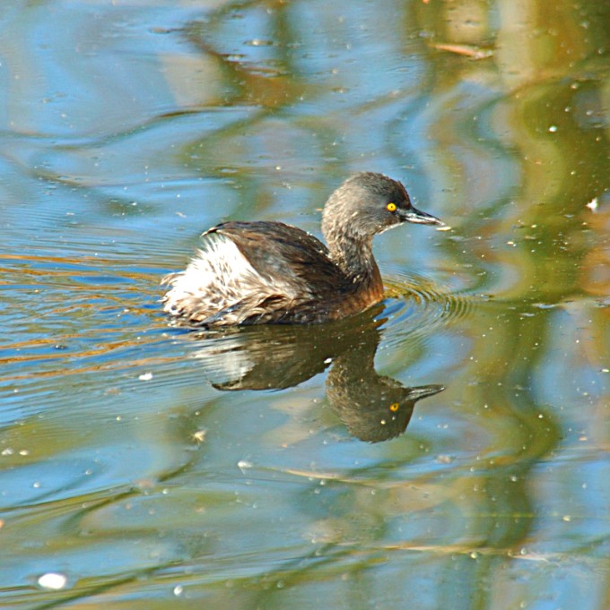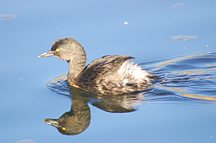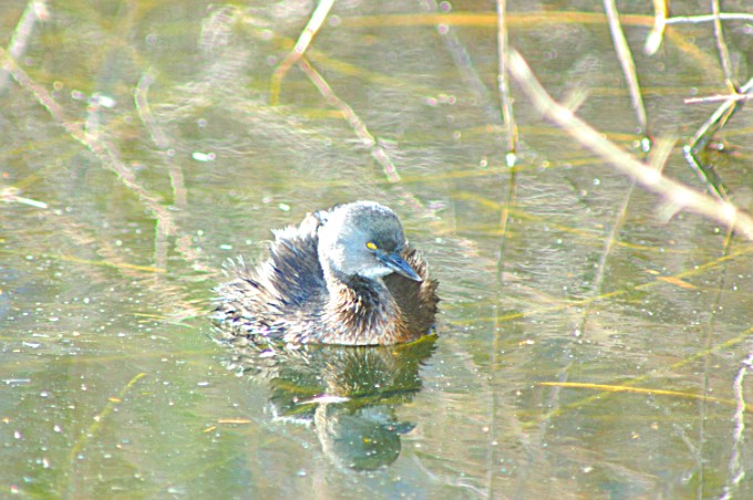 This Grebe can't be much over 8 inches with a narrow black bill, but that bright yellow eye gives it away right a way.