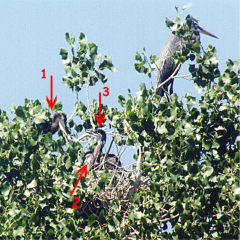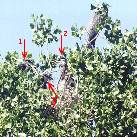 G/B Heron on the road dead. After that no mate ever came to the nest #1 to help with the feeding. The remaining bird leaves the nest every now & then and returns to feed the 2 chicks.