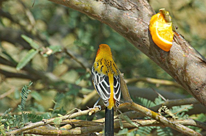 The Hooded Oriole has a bared back and the Streak-backed has light broken streaks which I shall try to show.