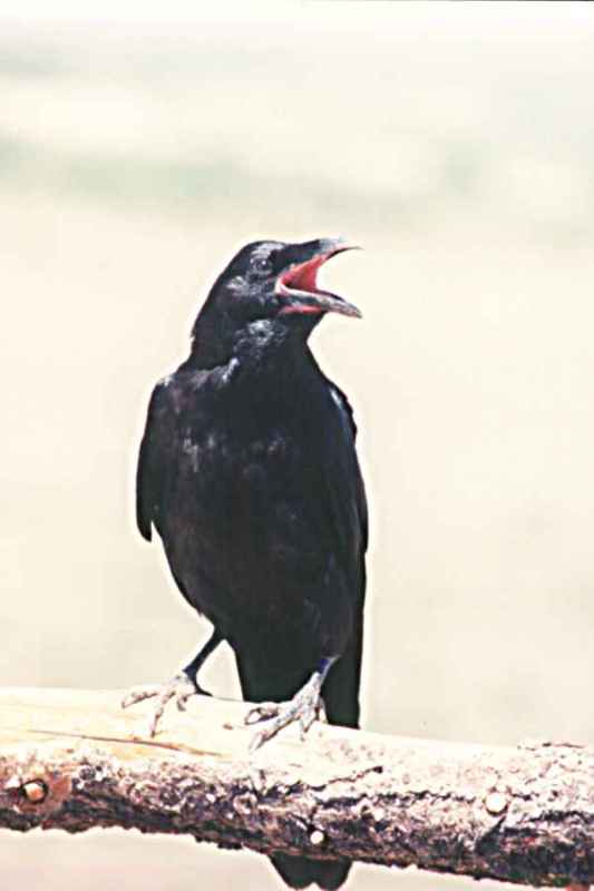 Larger than a *Chihuahuan Raven. Also has thicker and more shaggier front throat feathers than the Chihuahuan Raven.