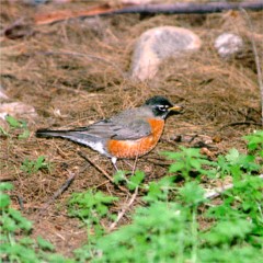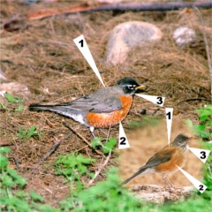 Throat is white with heavy black streaks. Note the bright pink bill. The rufous color wraps around from the breast to and up on the back. Not much difference if any in the sexes. Likes arid to semihumid deciduous & semideciduous forest. Mostly stays on the ground, especially when feeding. In Arizona in the winter they will mix in with flocks of American Robins. Eggs white with reddish brown marks.