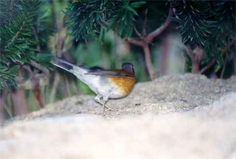 Throat is white with heavy black streaks. Note the bright pink bill. The rufous color wraps around from the breast to and up on the back. Not much difference if any in the sexes. Likes arid to semihumid deciduous & semideciduous forest. Mostly stays on the ground, especially when feeding. In Arizona in the winter they will mix in with flocks of American Robins. Eggs white with reddish brown marks.