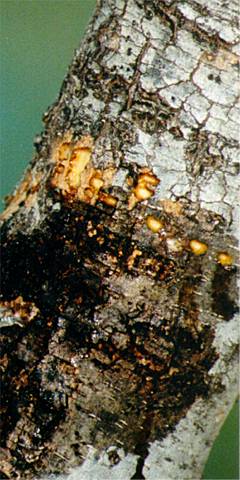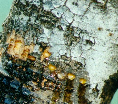 As you can see the Sapsucker doesn't really peck or drill deep holes. At the most they are no deeper than an 8th. of an inch. The dark area under the holes is where the sap has been running out of the hole and down the tree. |