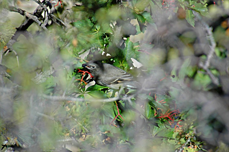 While walking along the walk way along the south rim at the Grand Canyon I spotted a cute little bird deep in a bush.
