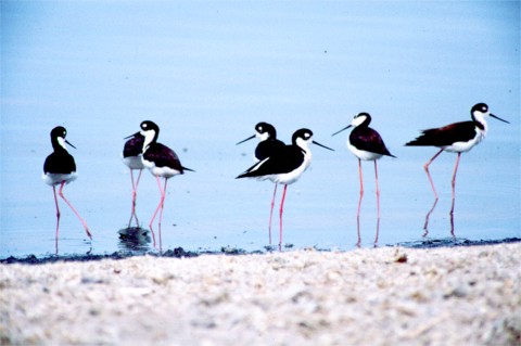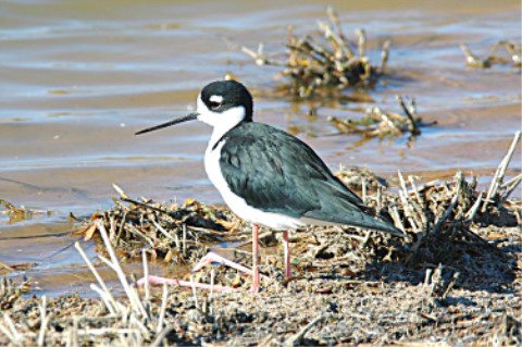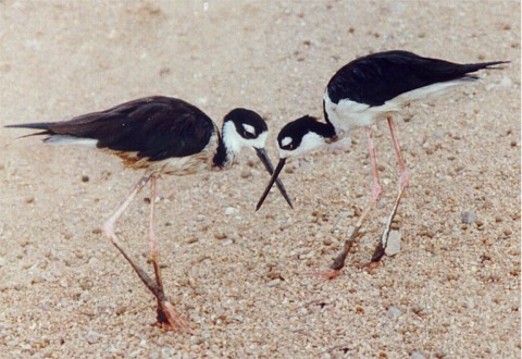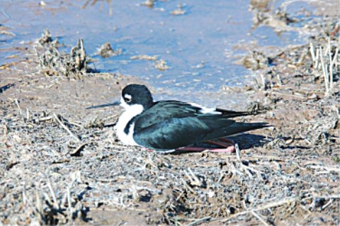 Also the black down the back of the bird's neck, hence, "Black-necked Stilt".