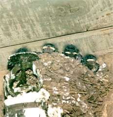 Nest under roof edges on farm buildings, and under bridges and some times in colonies.