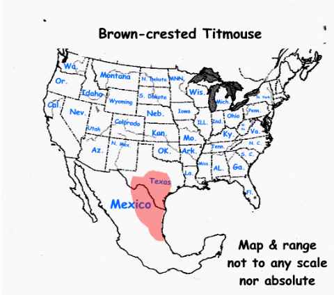 I was told this is a Brown-crested Titmouse. It was photographed in south central Texas.