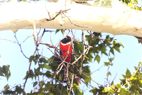 Male Trogon looking over his back at the photographer. |