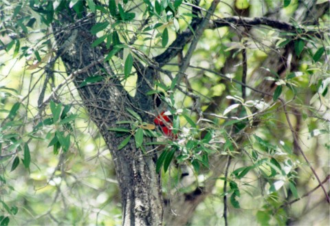 You wouldn't think a bright red bird could hide. |