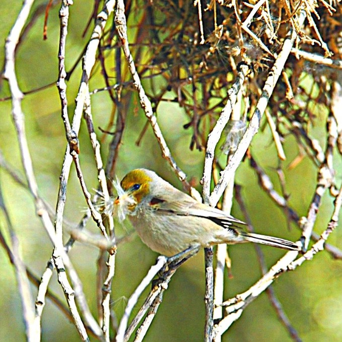 Yep, in just a few minutes this virden flew in with nesting material.