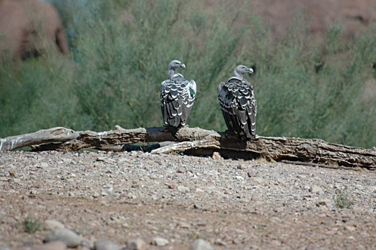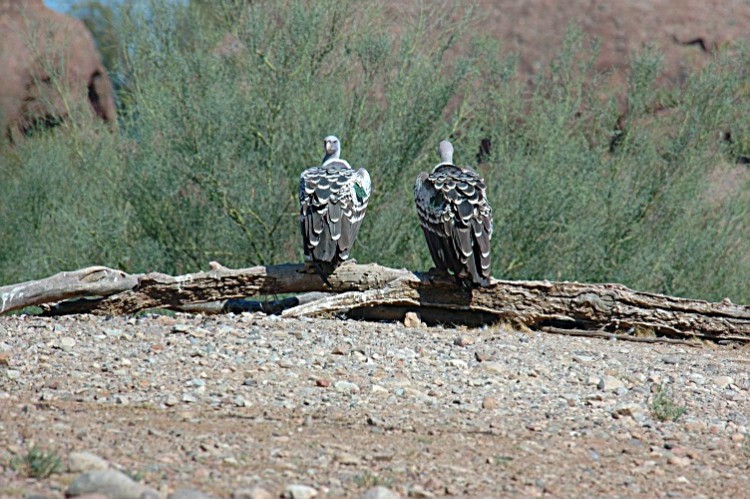 While scoping out the Savanna at the local zoo I spotted some very-very large birds perched on a pile of rocks way off in the distance.