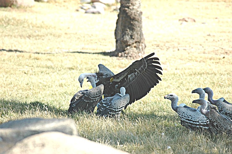 In some regions, it is the dominant vulture at a feeding site, though in other areas it is out-bullied by the much larger