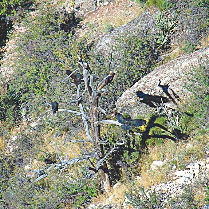 You really have to scour the trees when looking lover the canyon wall for the birds.