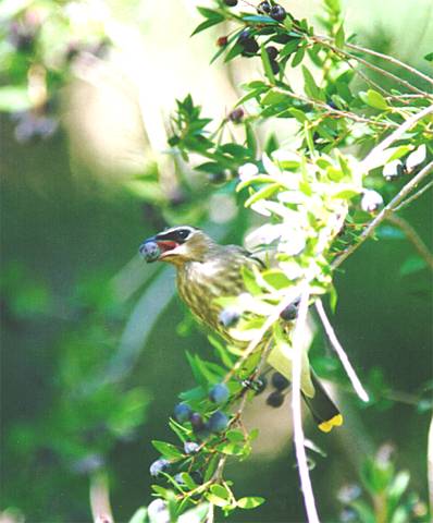 To learn more clickhere http://www.birds.cornell.edu/AllAboutBirds/BirdGuide/Cedar_Waxwing.html