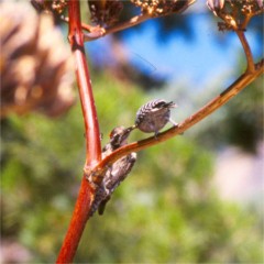 I have often, ( jokingly that is ) thought that maybe, the Acorn Woodpecker possibly thinks it's a Hummingbird.