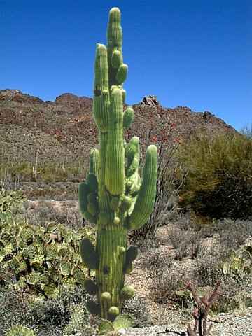 Heigh 30 to 40 feet. In 1975 this cactus was 12 feet high and had no arms.