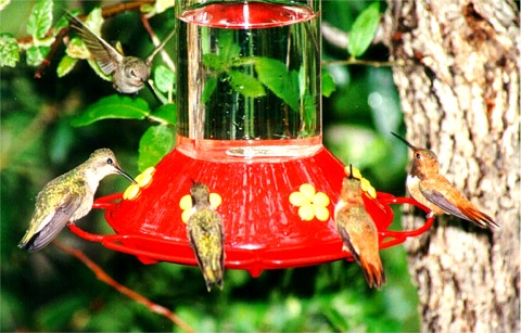 I didn't count then, but it seemed like there were 3 hummers for every hole in every feeder.