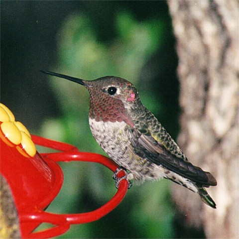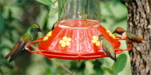 ![]() Is this the wrong bird? Note the under side of its bill is pink. This is not the bird that is in the other photos. Do you think there might two Beryllines there? Is this the hybrid Berylline? Take a closer look at all of these birds. |