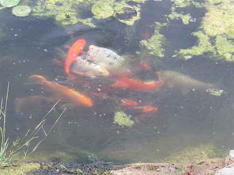 There are 3 ponds on the property each contain the frogs and some rather large Gold Fish.