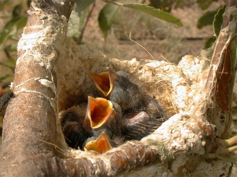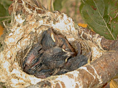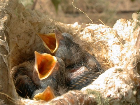 As you can see in this photo the chick doesn't look as if it has eyes open. It looks as if the chick is saying, "hey is there any one out there, I'm hungry".
