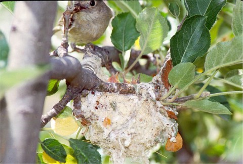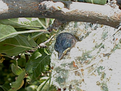 It was a hot muggy cloudless part of the day, no breeze, just the sun beating down on every thing. Photo was taken about noon or a little after. I believe in this image the parent bird was trying to shade its young. The nest was 50 inches above the ground.