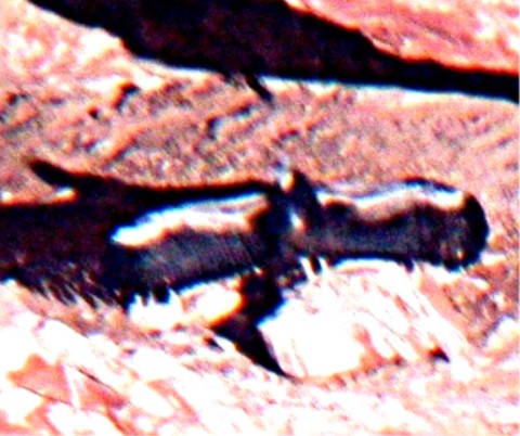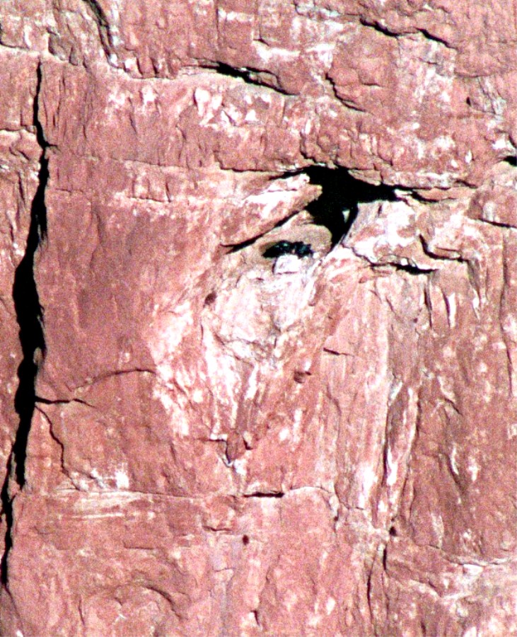 Last year a nest here failed. The park biologist repelled down some 170 feet or more to this cave entrance to see what possibly may have gone wrong. Remains found in the nest cave were from the Pleistocene area which in geologic terms is from 10,000 to about two million years ago. The juvenile and adult condor remains were Carbon 14 dated from 11,000 to 23,000 years ago. Remains of of at least three extinct mammals were also found in the cave, an extinct horse, bison, and brush ox.