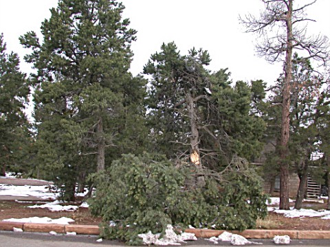 It was a very wet snow and there are many broken limbed trees along all of the roads.