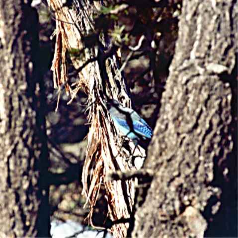 And down below were the Stellers jays pecking out bugs from the bark of those same trees.