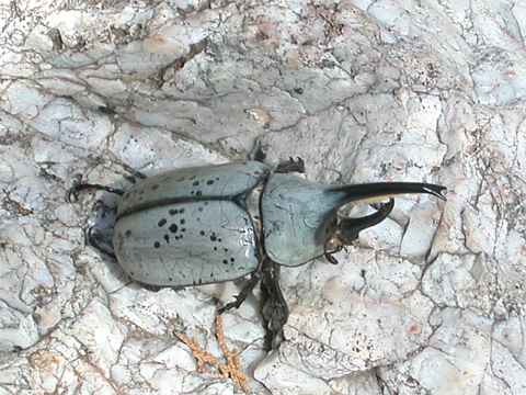The beetle is a hercules beetle, Dynastes granti. Your friend probably