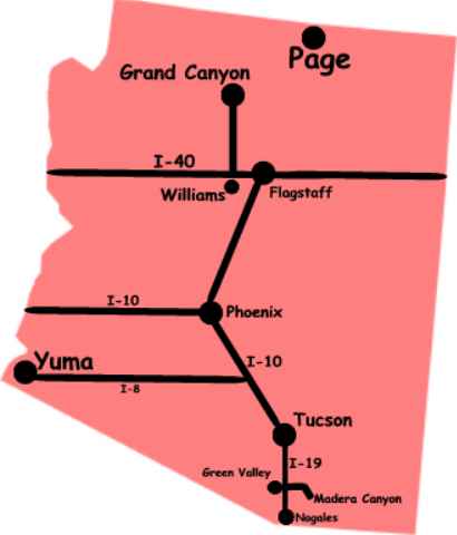 Map not to any scale-the trip from Phoenix approximately 150 miles.