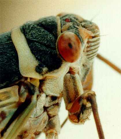 You describe this insect as a locust, but it is NOT a locust. It is in the Order Homoptera, Sub-family Cicadidae. Please feel free to do the limited amount of web research that I did to figure that out.