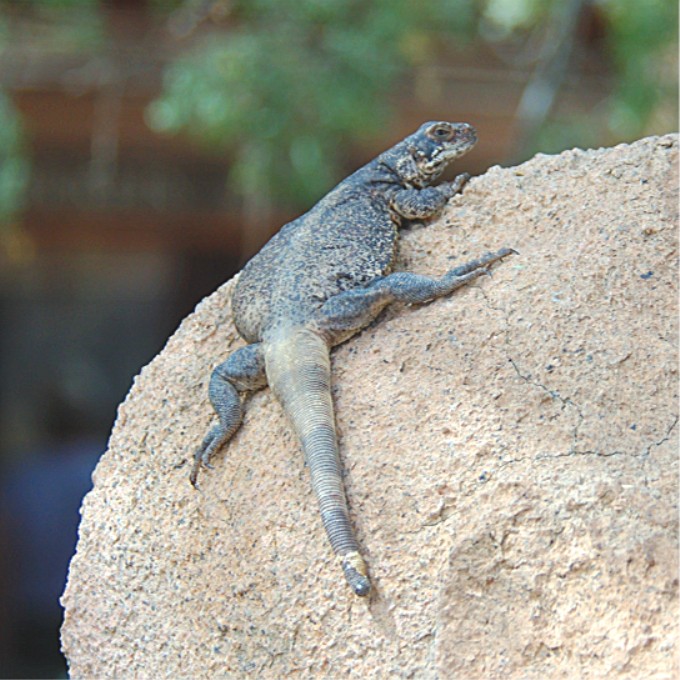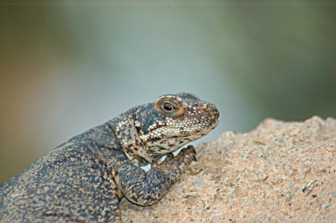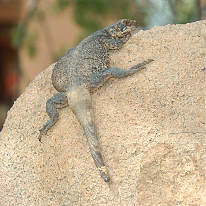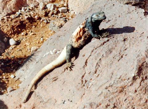 A large potbellied lizard. Normally seen as in above photo. You most generally find this lizard on large rocks, and it will scurry off and hide at the slightest movement or being frightened. In the mornings you could see it sunning it self on a rock. It like to have its body temp. to around 100 degrees before it starts off to find food. This is a herbivorous feeder.