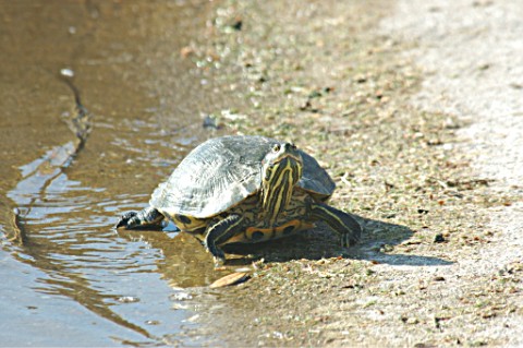 This the Turtle you bought in the dime store years ago, thus it got the nick name The Dime Store Turtle. It is best identified by the bright red, orange, or yellow stripe just behind its eye eyes.