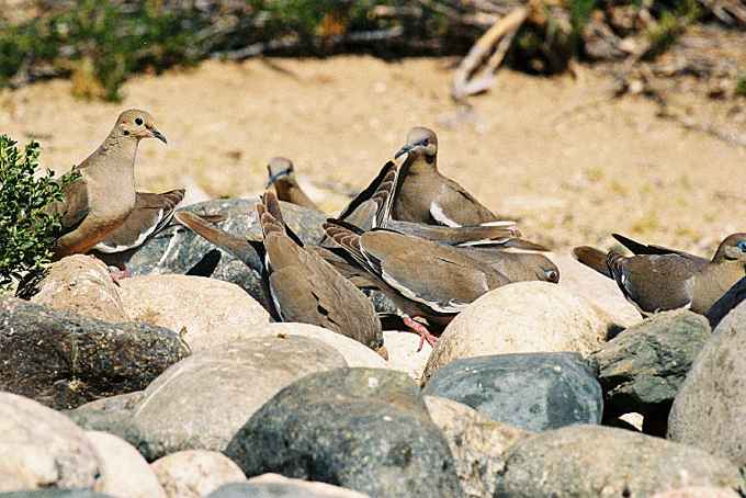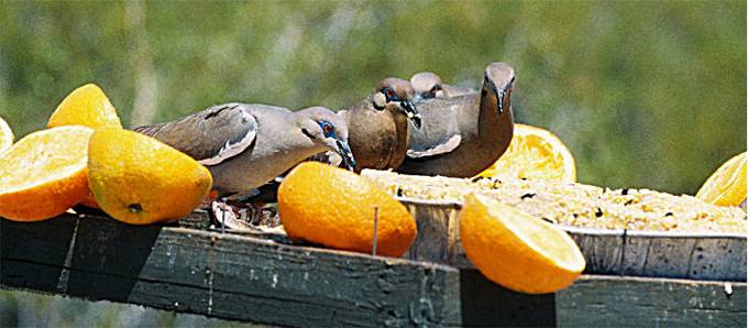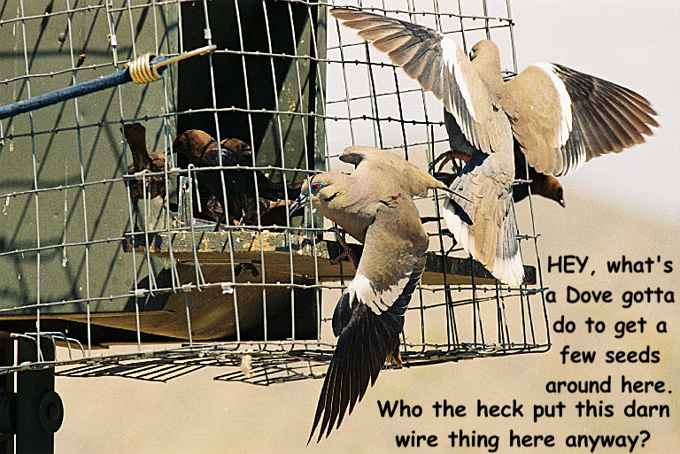 The White-winged Doves & the Morning Doves just won't give up when it comes to getting a seed or two.