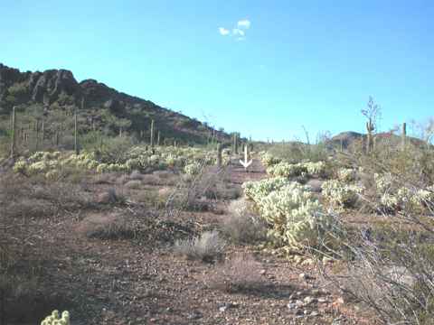 These are Chollas pronounced (Choy-ya). Bad-bad-bad stuff to get near. Their spines/needles/thorns are like fish hooks, once in you don't get them out. So far I haven't found much of any thing they can not penetrate including my tires & shoes. I did finally find 4 six-ply mud & snow light truck tires and so far (knock on wood for me) they have got through these tires. (knock-knock).