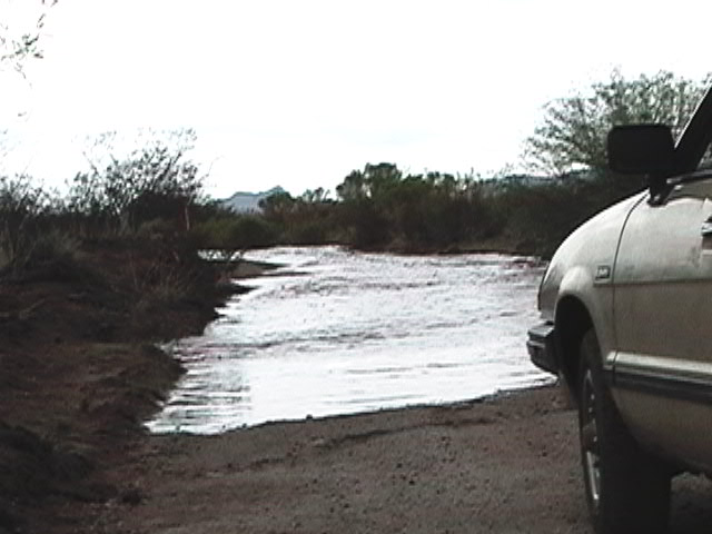On September 7 about 4:30 P.M. I went to my spot on the or in the Harcuvar Mountains. A storm had just pasted through and left a few flooded areas on the roads. One being about a mile plus long. After navigating that one I figured I was water proof and continued on. With in a mile or so I was confronted with more road flooding. Inasmuch as the road base is very rocky/sandy I chanced my getting through and that proved to be true.