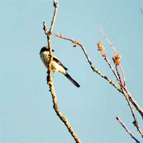 I said this was a Shrike, but because it is summer in Arizona I would say it is a Loggerhead Shrike.