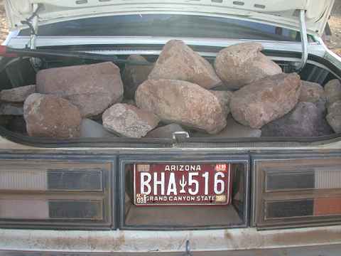 I have ready wasted about 4 hours driving around on the desert finding and picking up the rocks. If I start out for place by 5:30 it takes me 1 1/2 hours to drive there from home, 4 hours to pick up rocks, 1 hour for well needed R&R & 2 bottles of Gatorade I'm ready to have at it once again.