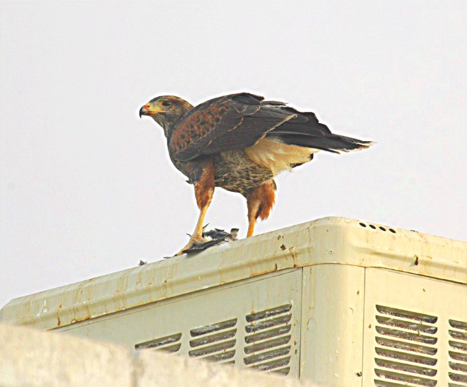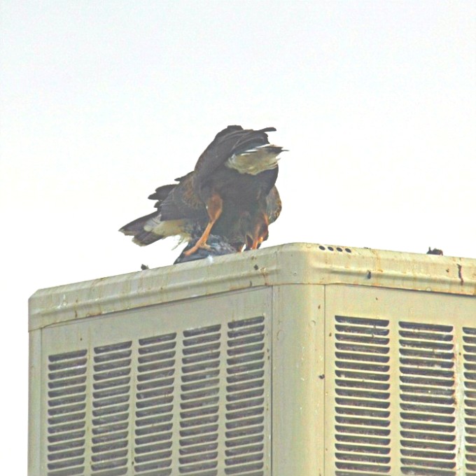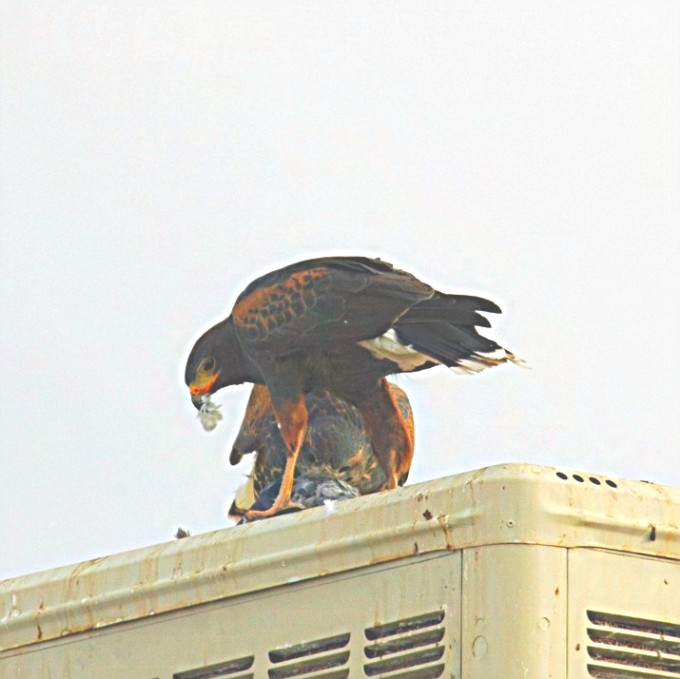 I KNEW THE HAWKS, HARRIS' AND RED-TAILS WERE CATCHING & EATING THE PIGEONS BUT HAD JUST NEVER BEEN A WITNESS TO IT.