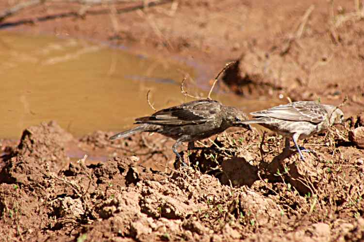 A couple of raggedy brown-headed Cowbirdsthey may or may not be a pair.