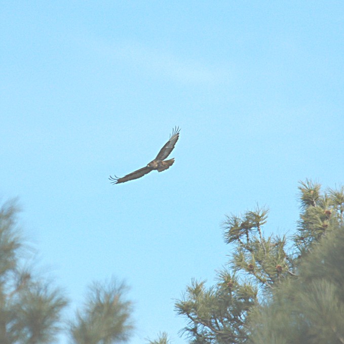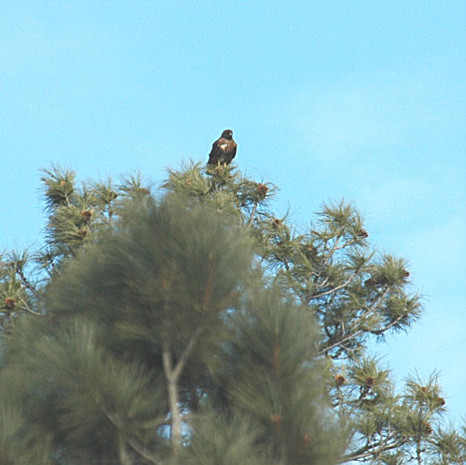 After getting back into the van I noticed a Hawk in a tree top quite some distance away.