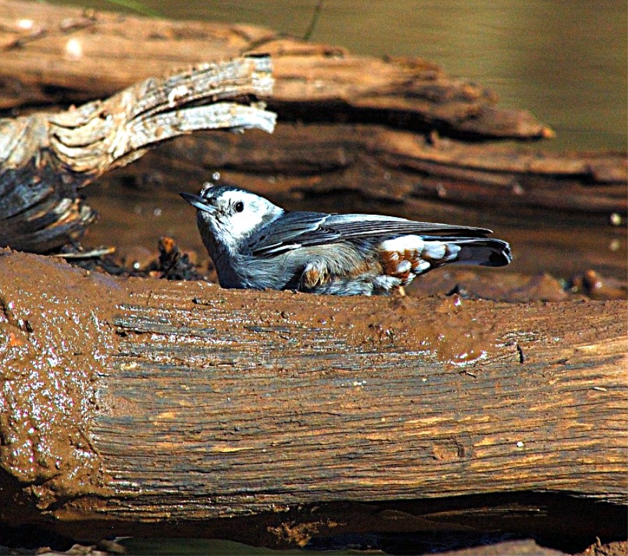 Think I'll just hide behind this log & maybe he will go away and not point that big lens at me.