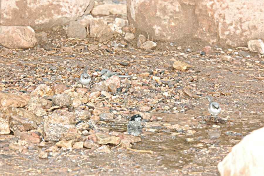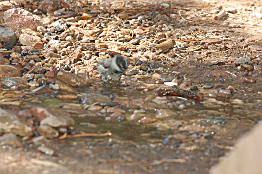 1 Through 4 Pygmy Nuthatches, 5 taking a bath Mountain Chickadee.