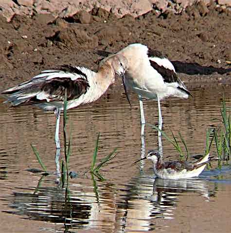 Looks as if we have conjoined at the head Avocets looking at their young :-))