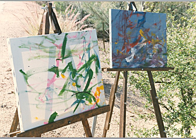 When finished she back away from the canvas and they would put up another to see if she wanted to paint more.