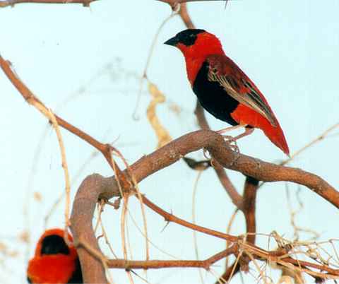 and the bird in the lower lerft is a Red Bishop (Euplectes orix) See nest photo next page.