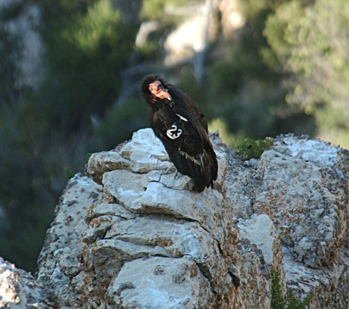 as they soar over and perch on the cliff rocks at the South rim of the Grand Canyon