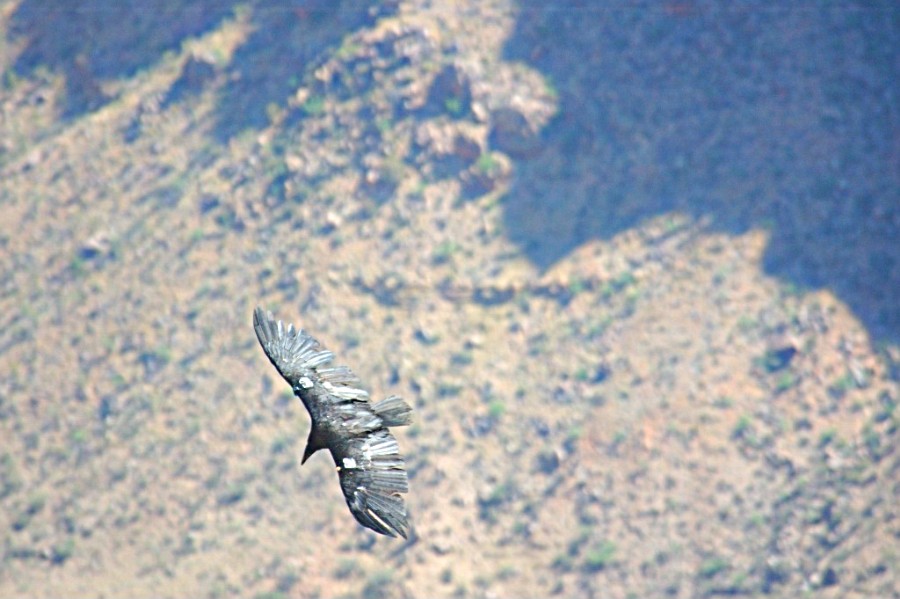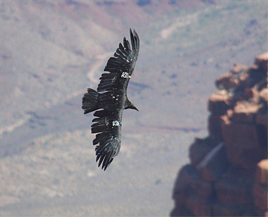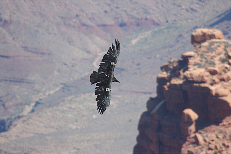 as they soar over and perch on the cliff rocks at the South rim of the Grand Canyon