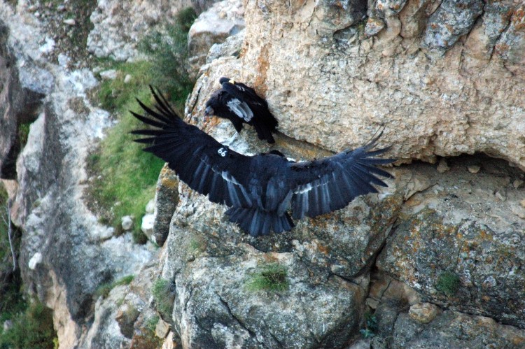 as they soar over and perch on the cliff rocks at the South rim of the Grand Canyon
